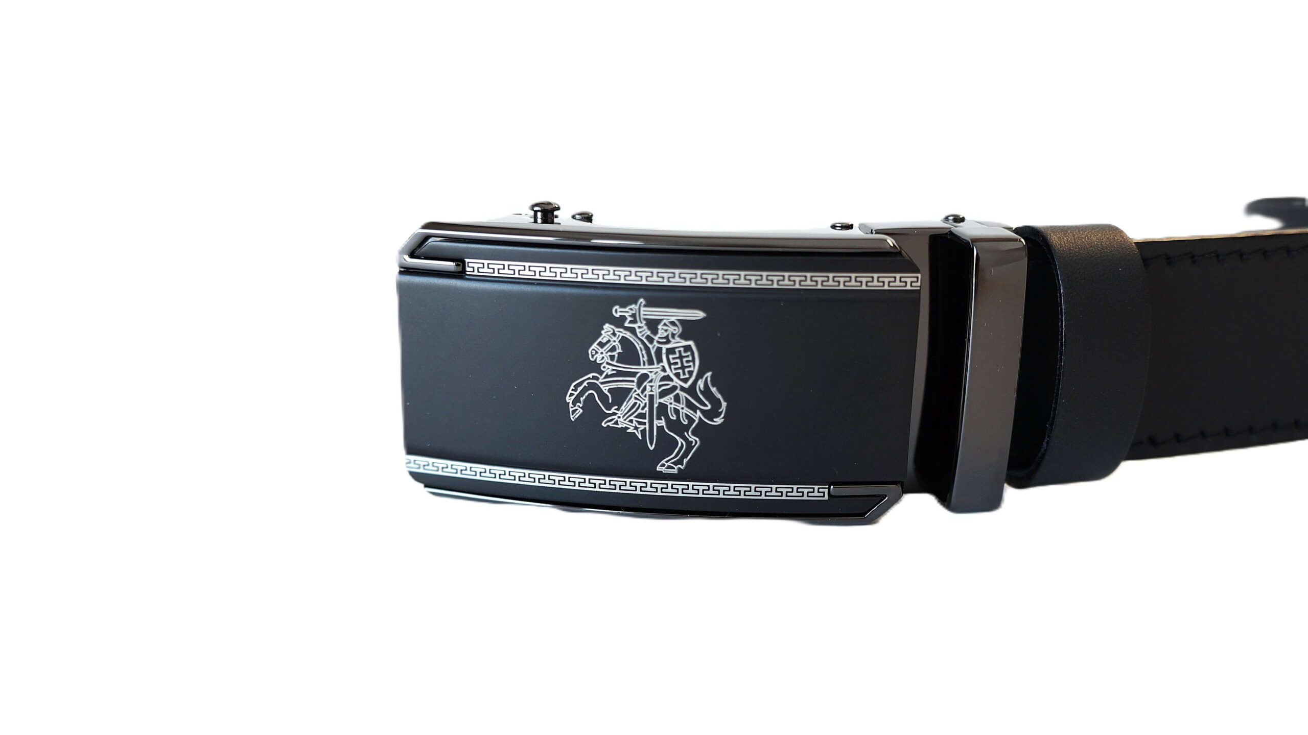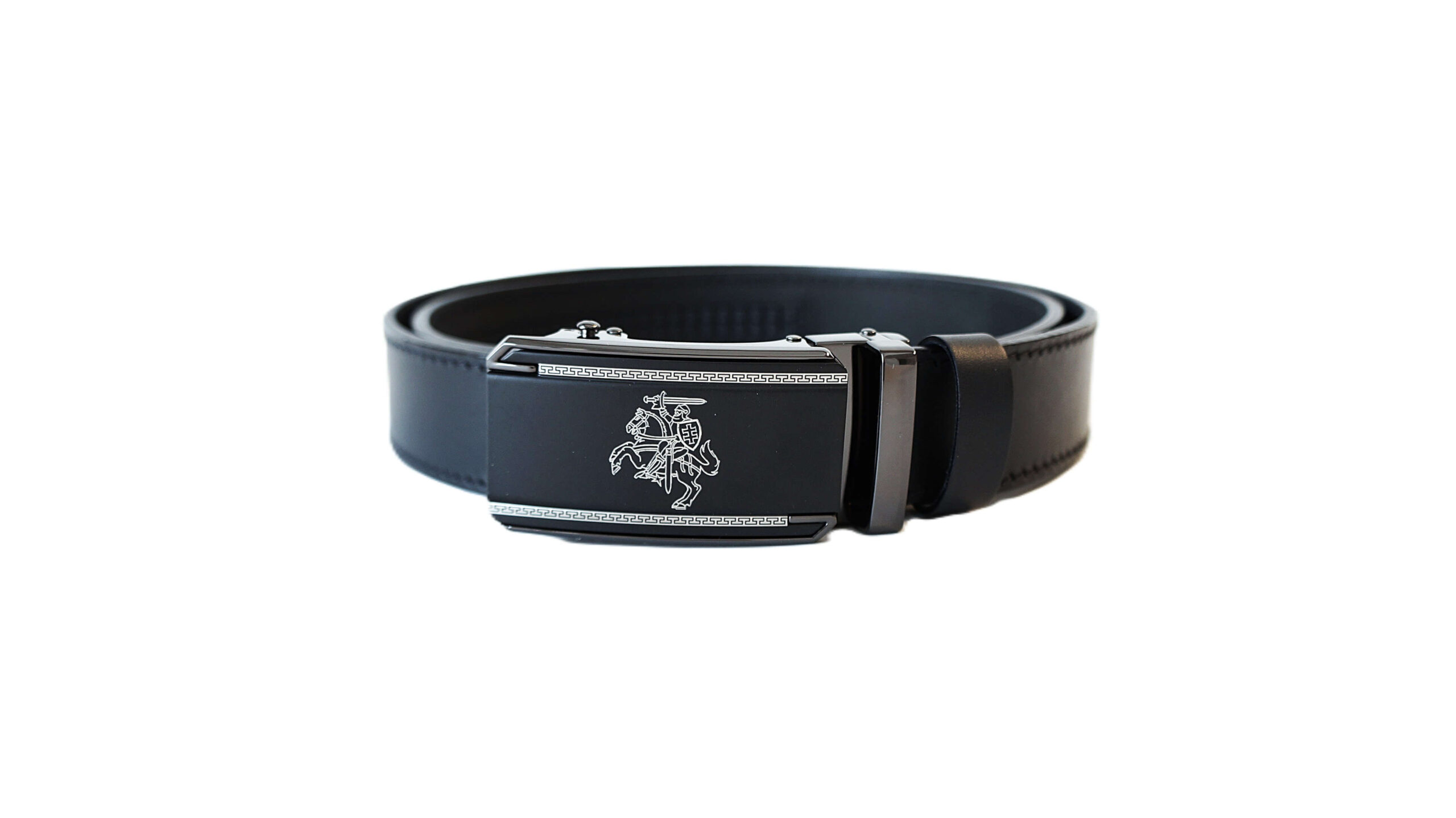 Prabangus vyriškas odinis diržas su Vyčio simbolika Vilnius Fashion BeltsPrabangus vyriškas odinis diržas su automatine sagtimi su Vyčiu V35064 Black (3,5 cm)